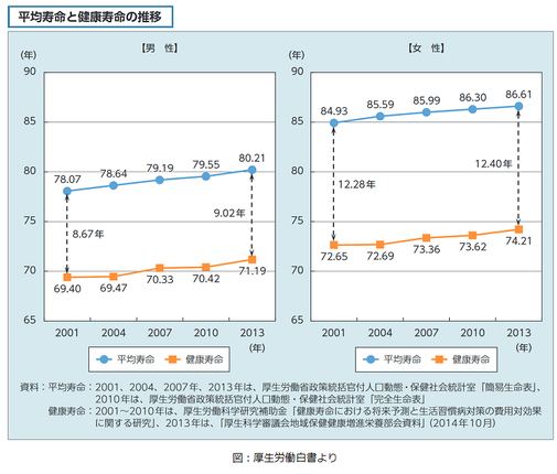 人の寿命において「健康上の問題で日常生活が制限されることなく生活できる期間」のこと。